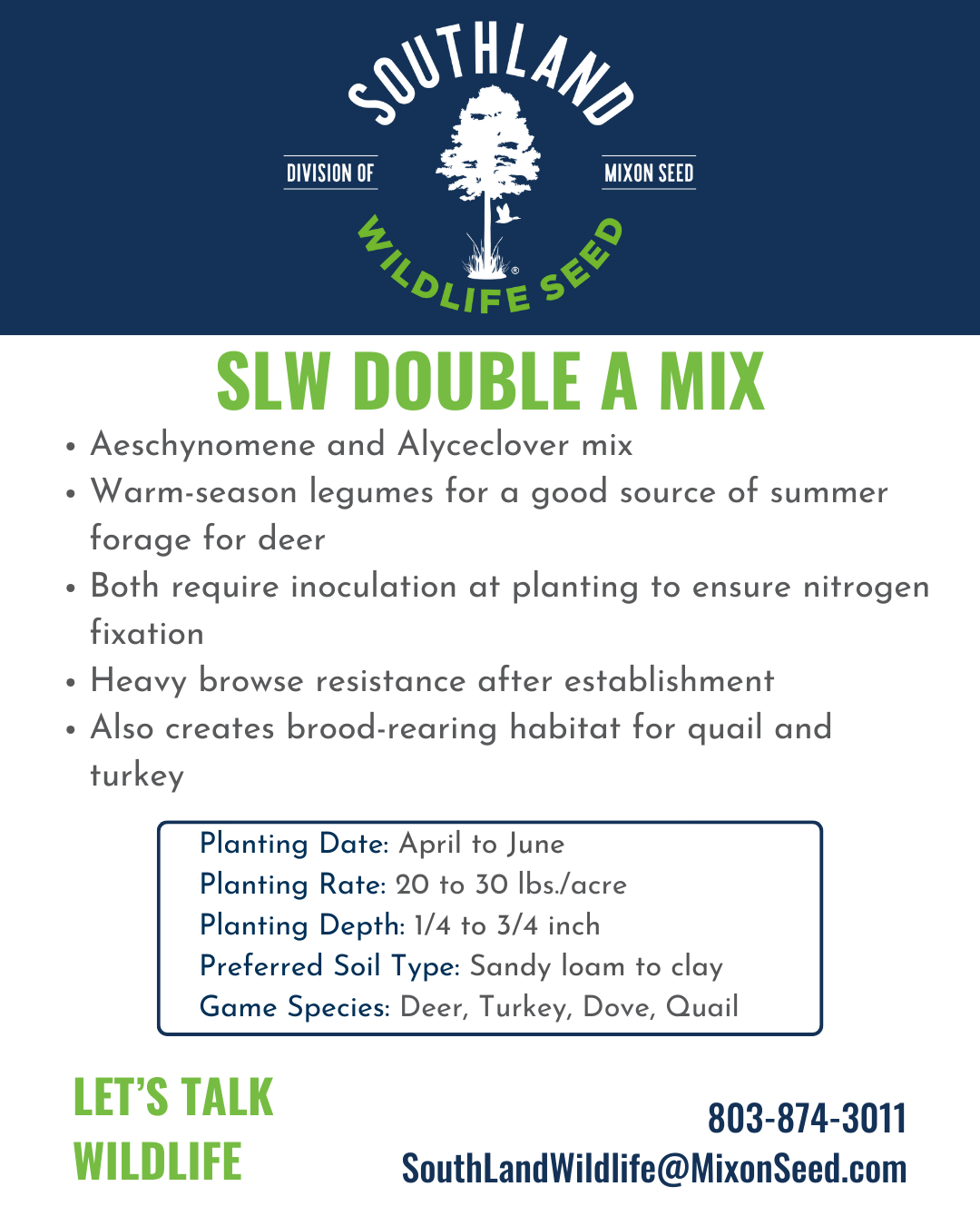 Interested in becoming a SLW Authorized Dealer? Email us at southlandwildlife@mixonseed.com.