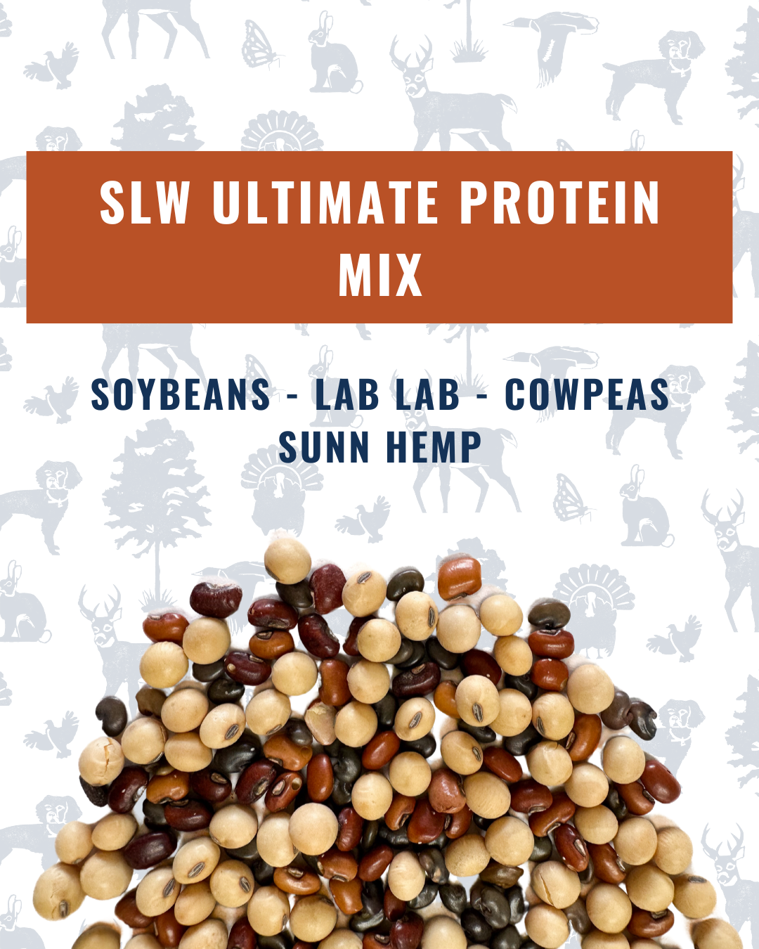 The SLW Ultimate Protein Mix has been designed with overall animal health in mind by providing high-quality digestible protein options. The high crude protein levels provide nutrition during antler regrowth and milk production during the harsh summer. The sunn hemp in this mix can reach tall heights (up to 8 ft.) but can be managed by bush hogging/mowing shooting lanes/etc before season.