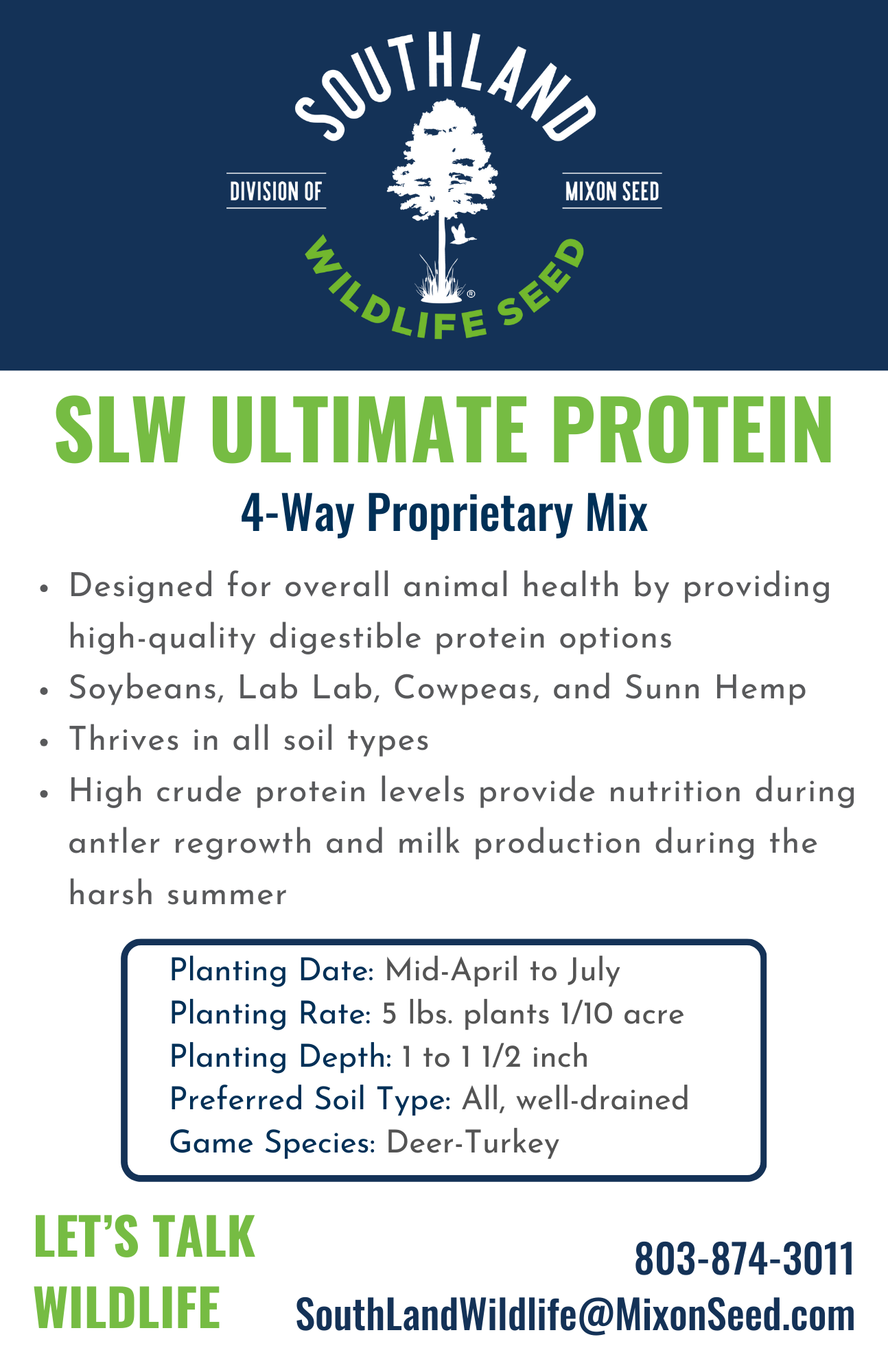 Interested in becoming a SLW Authorized Dealer? Email us at southlandwildlife@mixonseed.com.