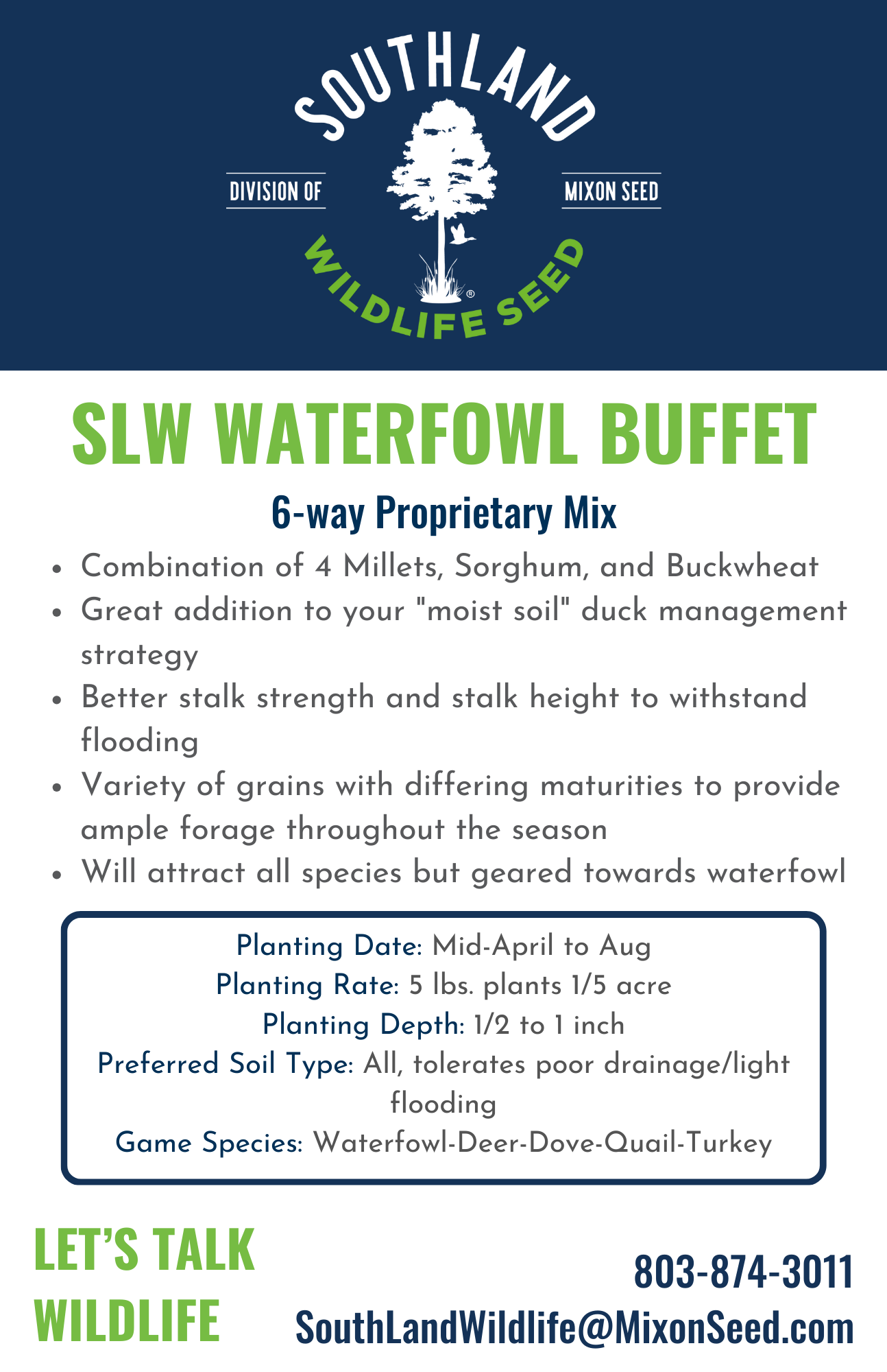 Interested in becoming a SLW Authorized Dealer? Email us at southlandwildlife@mixonseed.com.